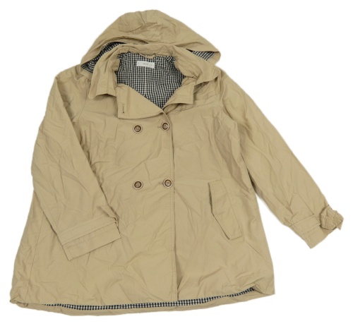 Béžový šušťákový jarný kabát s kapucňou a golierikom MANGO