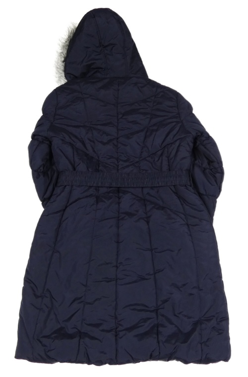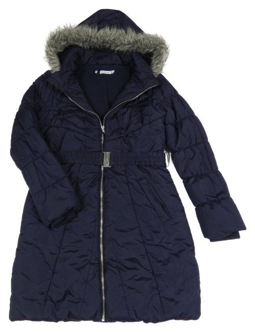 Tmavomodrý šušťákový zimný kabát s opaskom a kapucňou blu