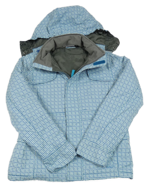 • Bielo-petrolejovo-modrá vzorovaná šušťáková zimná bunda s odopínacíá kapucňou PROTEST
