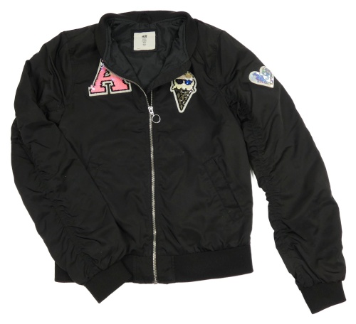 Čierna šušťáková jarná bunda s nášivkami H&M