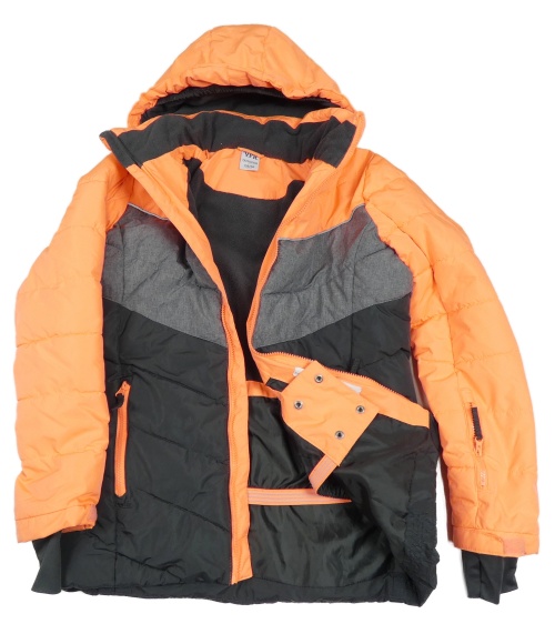 Neónově korálovo-sivo-antracitová šušťáková lyžiarska bunda s kapucňou Y.F.K.