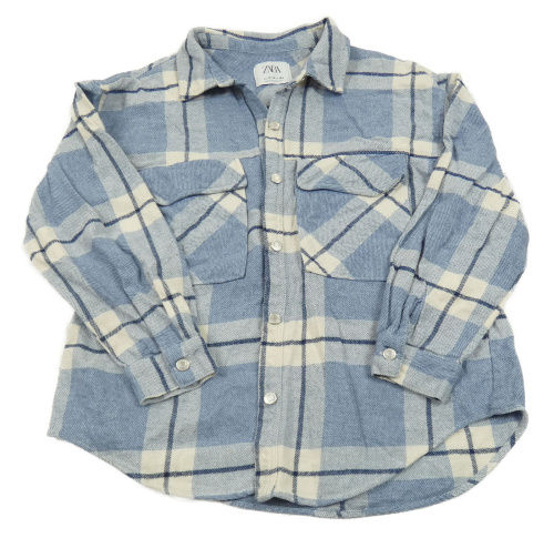 Modro-bielo-tmavomodrá kockovaná košeľová bunda ZARA