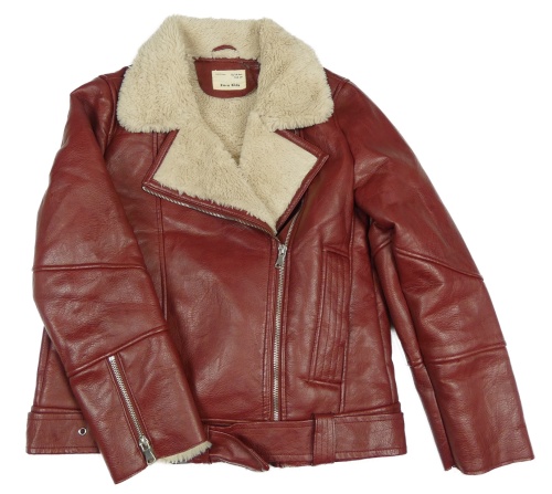 Vínový koženkový zateplený krivák s kožešinou Zara