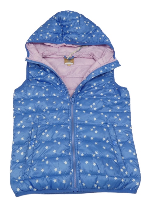 Modrá šušťáková prešívaná zateplená vesta s hviezdičkami a kapucňou Manor