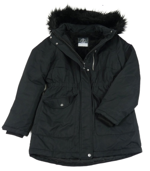 Čierna šušťáková zimná parka s kapucňou s kožešinou George