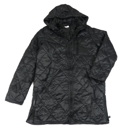 Čierny prešívaný šušťákový zateplený kabát s odopínacíá kapucňou H&M