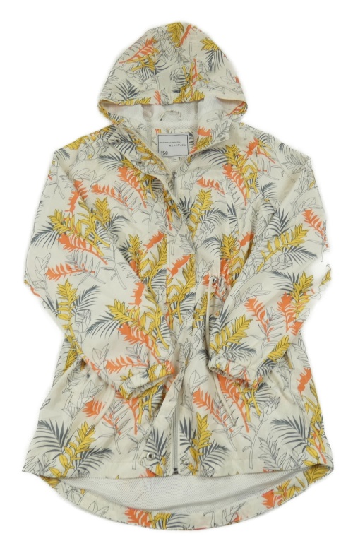 Smetanovo-farebná kvetovaná šušťáková jarná parka s kapucňou Reserved