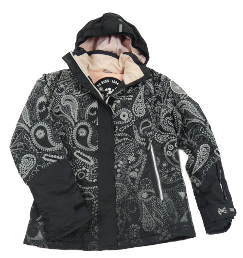 • Čierno-sivá vzorovaná šušťáková zimná lyžiarska bunda s odopínacíá kapucňou