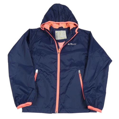 reflexní prvky, křiklavě korálové lemy u rukávů a kapuce