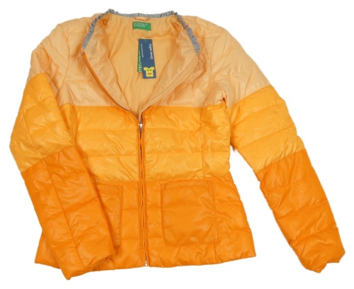 Nové - pomerančová šušťáková prešívaná zateplená bunda Benetton