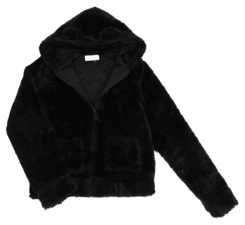 Čierna kožušinová podšitá bunda s kapucňou H&M