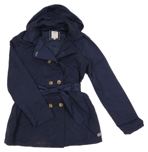Tmavomodrý šušťákový jarný kabát s opaskom a kapucňou S. Oliver