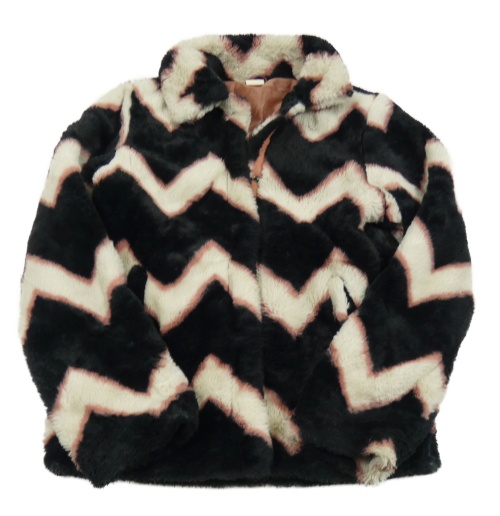 Čierno-bielo-ružová vzorovaná podšitá kožušinová bunda Hema