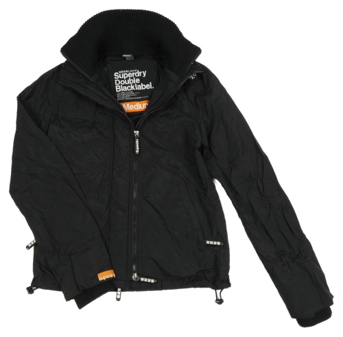 Čierna šušťáková jarná bunda s logom a kapucňou Superdry