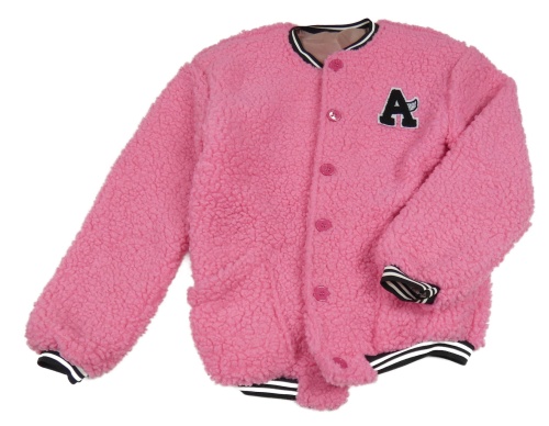 Ružová huňatá podšitá bunda s písmenem