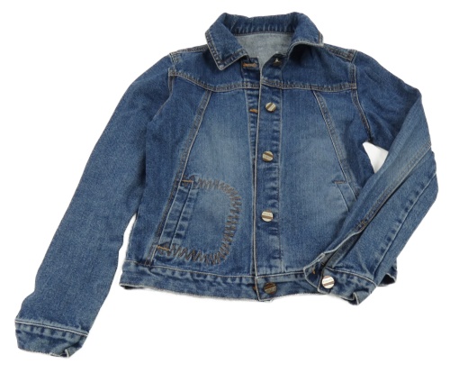 Tmavomodrá rifľová crop bunda