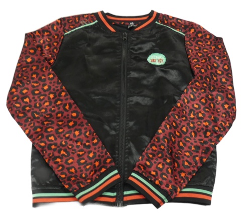 Čierno-vínová saténová bunda s nášivkou a leopardím vzorom