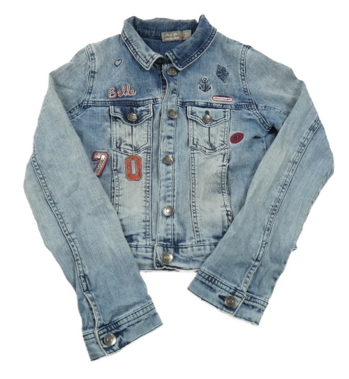Svetlomodrá crop rifľová bunda s nášivkami Orchestra