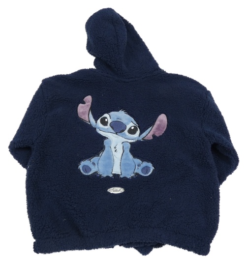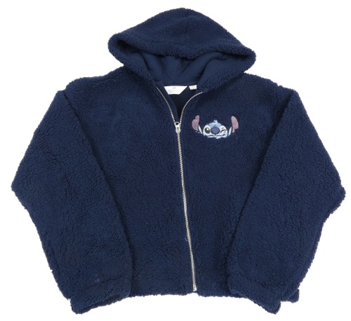Tmavomodrá huňatá crop bunda so Stitchem a kapucňou H&M