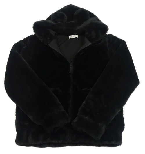 Čierna kožušinová podšitá bunda s kapucňou H&M