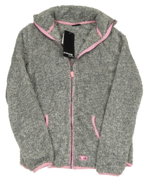Nové - Sivá chlpatá bunda s růžovým lemem Page one young vel. 176