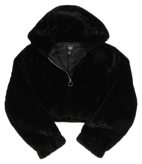 Čierna kožušinová podšitá crop bunda s kapucňou New Look