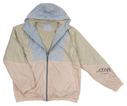 Béžovo-svetloružová -svetlomodrá šušťáková jesenná bunda s kapucňou Page one young vel. 176
