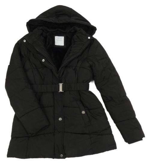 Čierny šušťákový zimný kabát s opaskom a kapucňou Primark