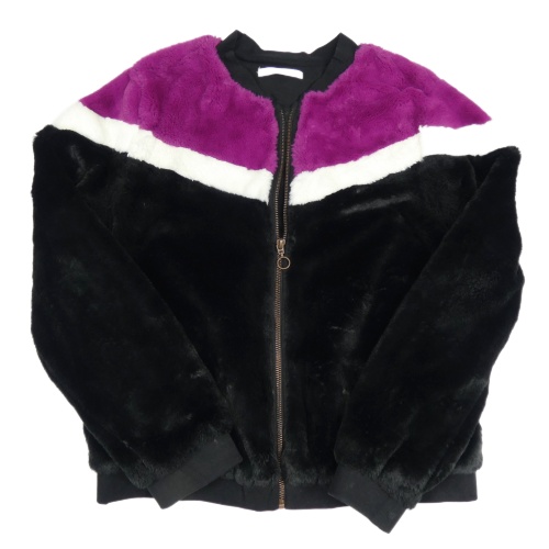 Purpurovo-bielo-čierna chlpatá podšitá bunda M&S