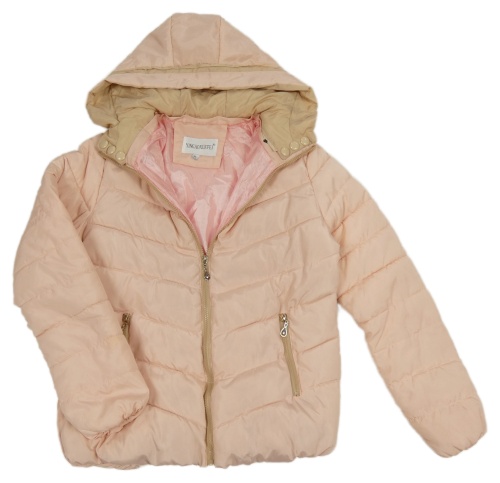 Svetloružová prešívaná šušťáková zimná bunda s odopínacíá kapucňou