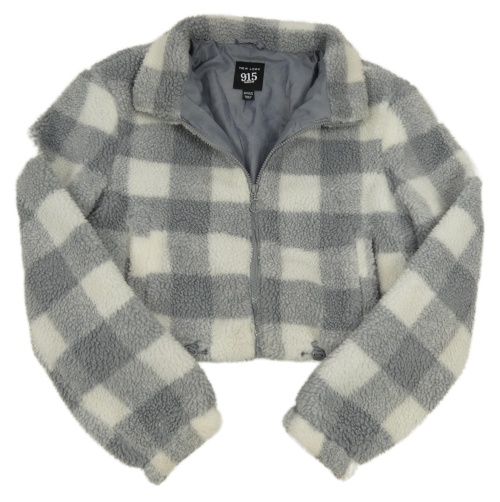 Sivo-svetlosivá kockovaná huňatá podšitá crop bunda New Look