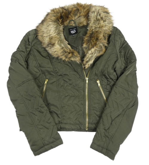 Khaki šušťáková crop zateplená bunda s kožeškem New Look