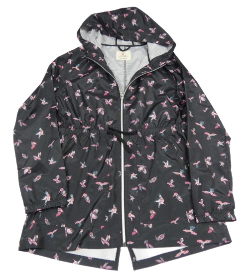 Čierna šušťáková ľahká parka s vtáčky a kapucňou Primark