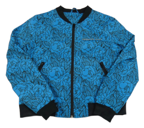 Azurovo-čierna kvetinová šušťáková jarná bunda