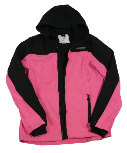 Čierno-ružová softshellová bunda s nápisom a kapucňou