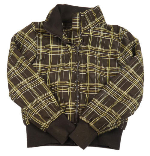 Hnedo-žltá kockovaná šušťáková zateplená bunda Steeds vel. 176