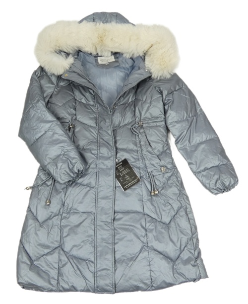Nový - sivý prešívaný nepromokavý zimný kabát s kapucňou s kožešinou