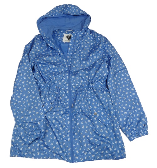 Modrá šušťáková jarná parka s bielými kvietkami a kapucňou F&F