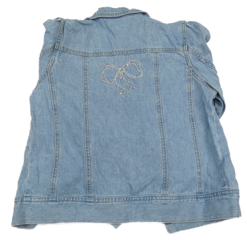 Svetlomodrá rifľová crop bunda s kamienkami a mašlou a golierikom George
