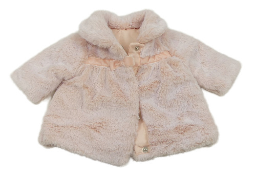 Svetloružový kožušinový zateplený kabát s mašlou a golierikom Nutmeg