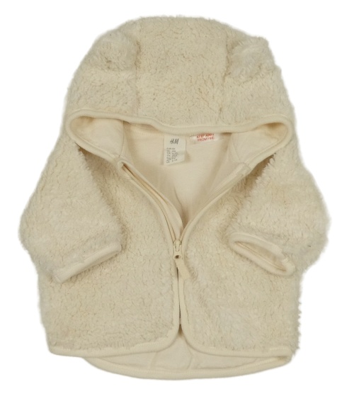 Smotanová huňatá podšitá bunda s kapucňou s uškami H&M