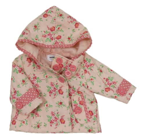 Svetloružová kvetinová šušťáková zateplená bunda s kapucňou