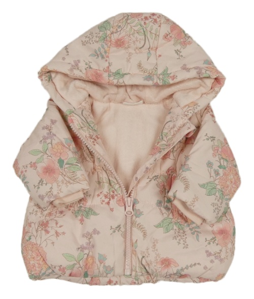 Svetloružová kvetinová šušťáková zimná bunda s kapucňou Next