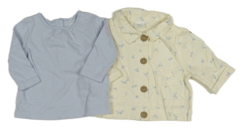 2set - Smotanová rifľová bunda s kytičkami + svetlomodré tričko Next