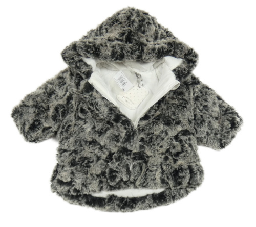 Nové - šedo-černý kožešinový zateplený kabátek s kapucňou absorba
