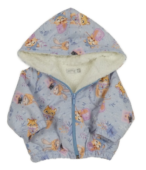 Levandulová šušťáková zateplená bunda so zvířaty a kapucňou