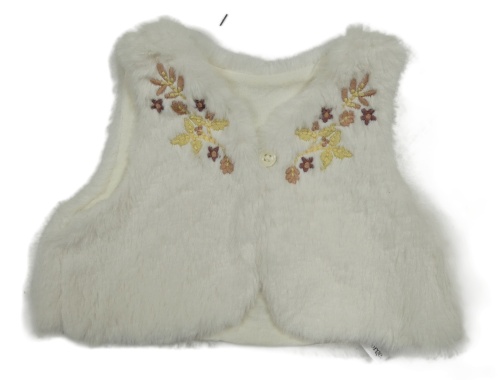 Biela chlpatá podšitá vesta s kvietkami George