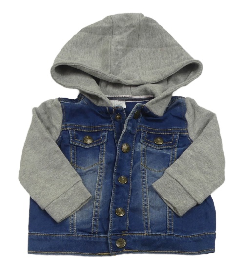 Modrá rifľová bunda s mikinovymi rukávy a kapucňou F&F
