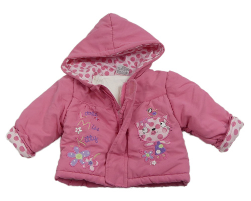 Ružová šušťáková zimná bunda s mačkou a kapucňou