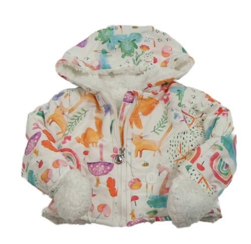 Biela šušťáková zateplená bunda so zvířaty a kapucňou